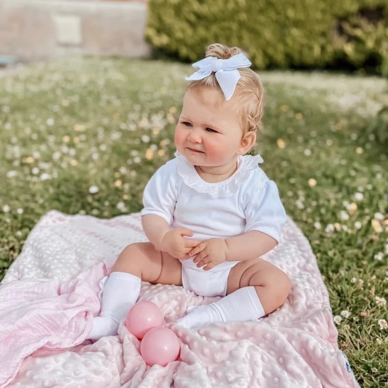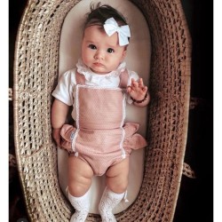 Wykonane z miękkiego bawełnianego dżerseju. Zapinane na zatrzaski biegnące w dół pleców.