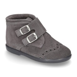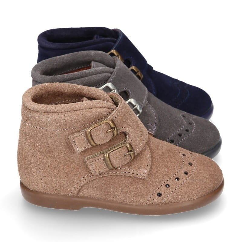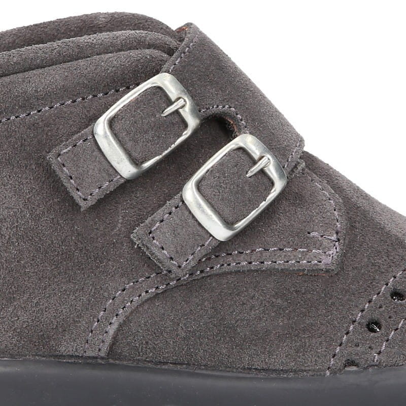 Klasyczne zamszowe botki w stylu oxford z podwójnym zapięciem na rzep. Skórzana wkładka zapewnia mniejsze pocenie się stóp, wkładka nie marszczy się i nie przesuwa.