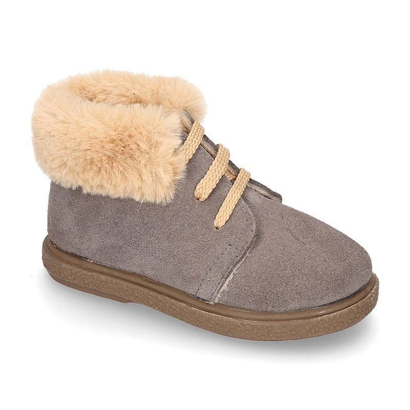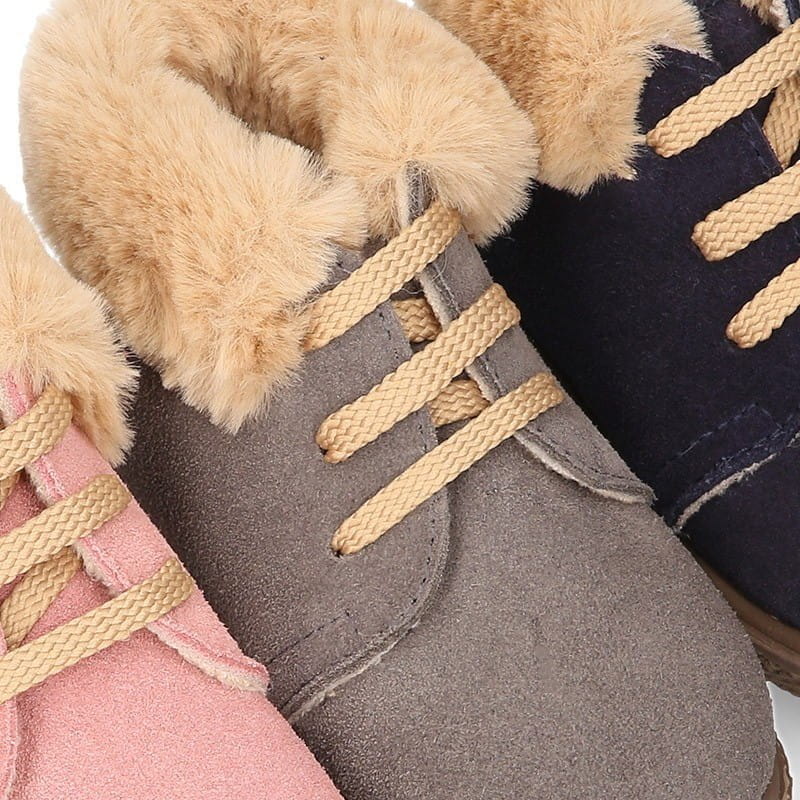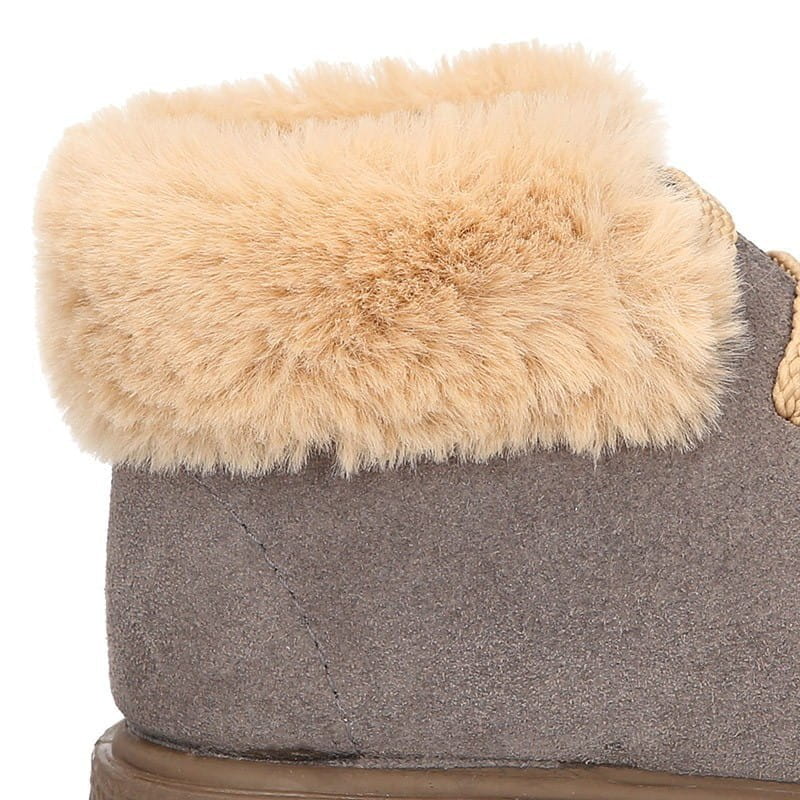 Zamszowe botki z futerkiem ocieplane. Wykonane z naturalnej skóry zamszowej.
