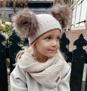 Czapka z pomponami. Hiszpański producent. Czapka wypada mniejsza.