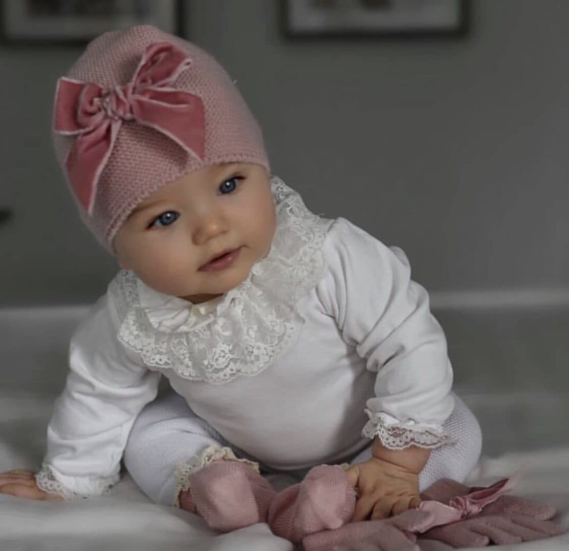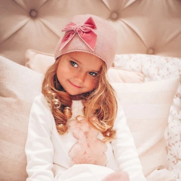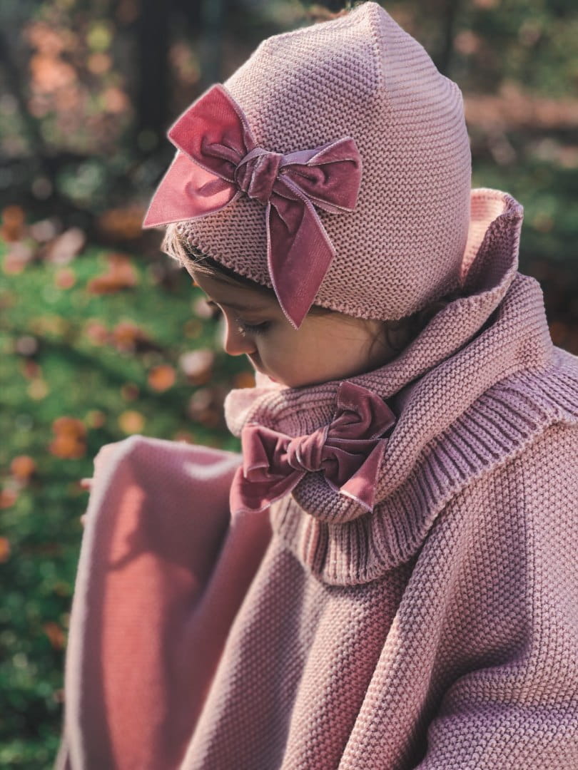 Czapka z aksamitną kokardą. Hiszpański producent. Czapka wypada mniejsza.