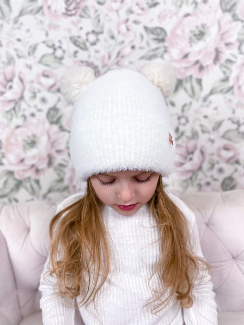Ciepła czapka wykonana z przędzy przypominającej włos alpaki.