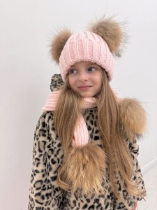 Zestaw czapka i szalik z pomponami. Idealny na jesień/zimę.