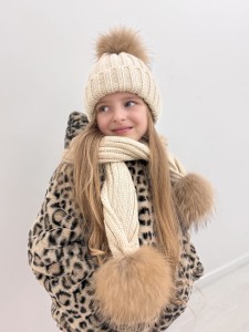 Zestaw czapka i szalik z pomponami. Idealny na jesień/zimę.