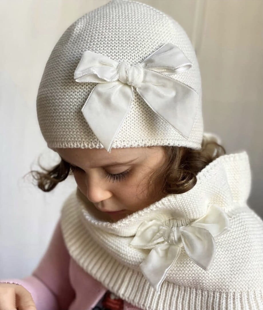 Komin w kolorze ecru z kokardką velvet. Hiszpański producent.