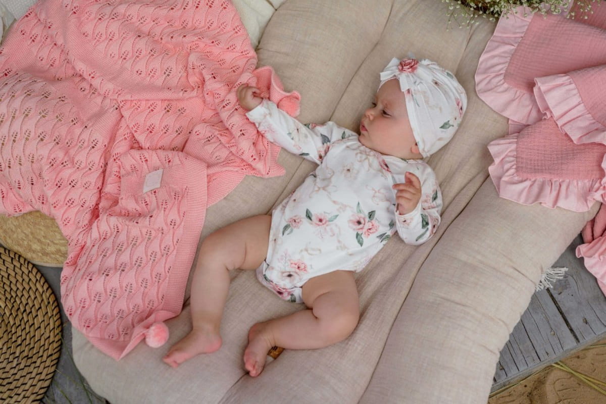 Uroczy dziewczęcy turban i chusta wykonane z wiskozy bambusowej. Przód czapeczki zdobi urzekająca kokarda z kwiatuszkami. Turban jest mięciutki, bardzo elastyczny, pięknie układa się na głowie dziecka. Wykonany w 95% z tkaniny bambusowej. Co musisz wiedzieć o czapce bambusowej : jest niezwykle delikatna i miękka posiada właściwości antybakteryjne i antygrzybiczne potwierdzone badaniami laboratoryjnymi bambus nie powoduje odczynów alergicznych posiada właściwości termoregulacyjne, w upały daje poczucie świeżości, zimą zaś przyjemnego ciepła zatrzymuje szkodliwe promieniowanie UV budowa włókna bambusowego zatrzymuje w sobie brzydkie zapachy eliminując je do czasu prania produkt nawet po wielu praniach zachowuje swoją miękkość i kolor Ponadto, dzianina posiada certyfikat Oeko-tex Standard 100.