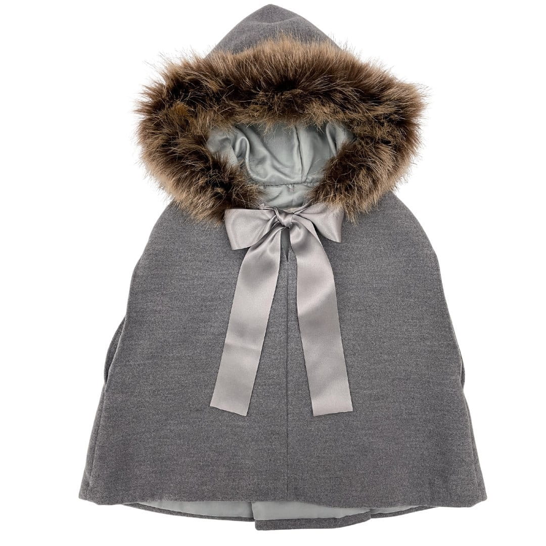 Pelerynka z kapturem w kolorze szarym. Portugalski producent.