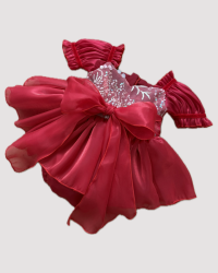 Rampers świąteczny dla Dziewczynki – Czerwony z Ozdobnym Tiulem i Wielką Kokardą