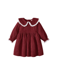Bordowa sukienka świąteczna z kołnierzykiem.