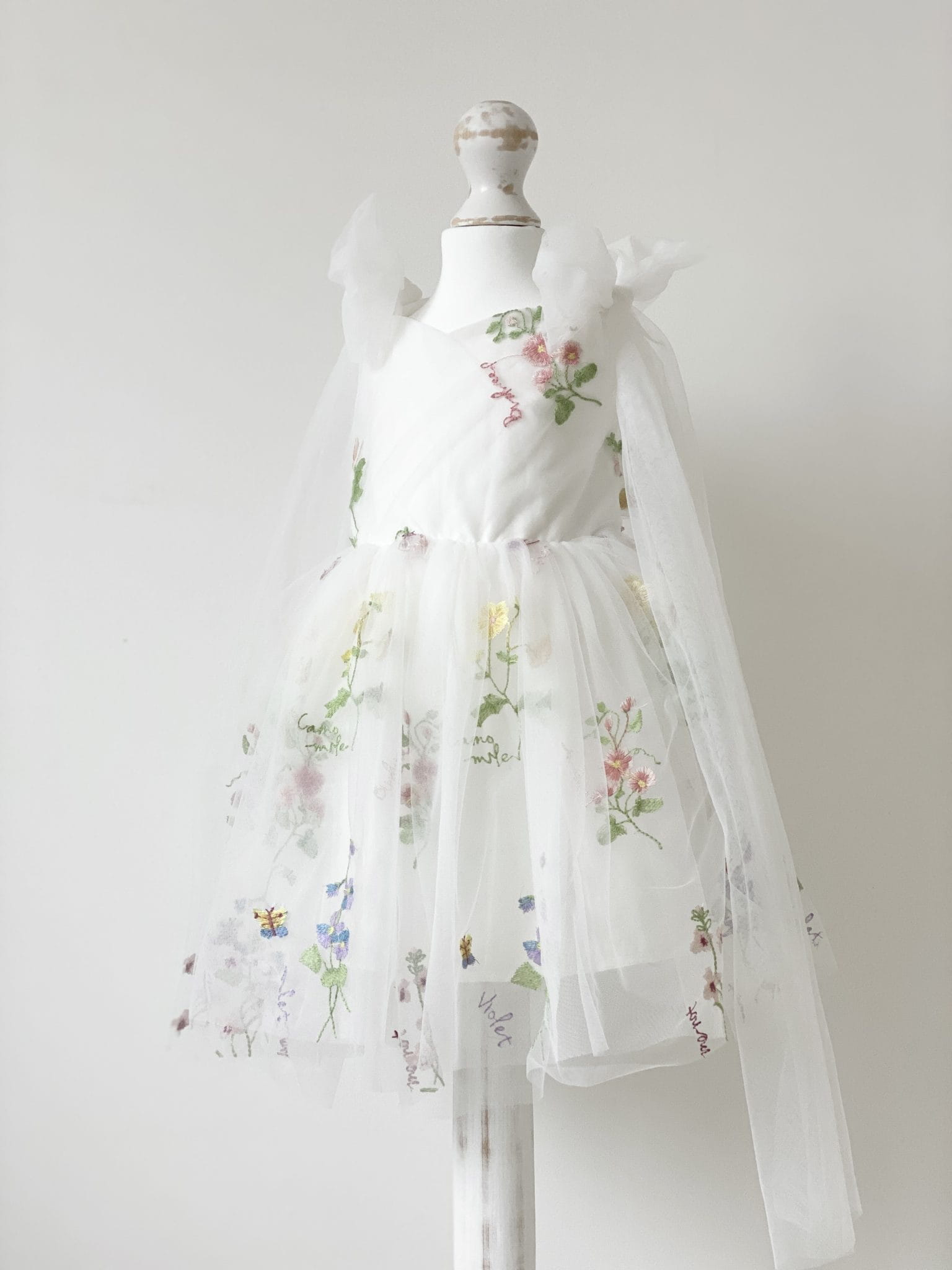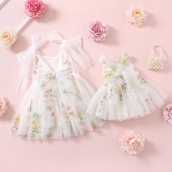 Sukienka z przepięknej tiulowej tkaniny haftowanej kwiatami, najmodniejszy wzór w tym sezonie.