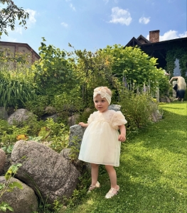 Sukienka tiulowa z siateczki, o strukturze przypominającej różyczki. Sukienka zapinana z tyłu na kryty zamek.