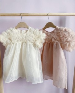 Sukienka tiulowa z siateczki, o strukturze przypominającej różyczki. Sukienka zapinana z tyłu na kryty zamek.