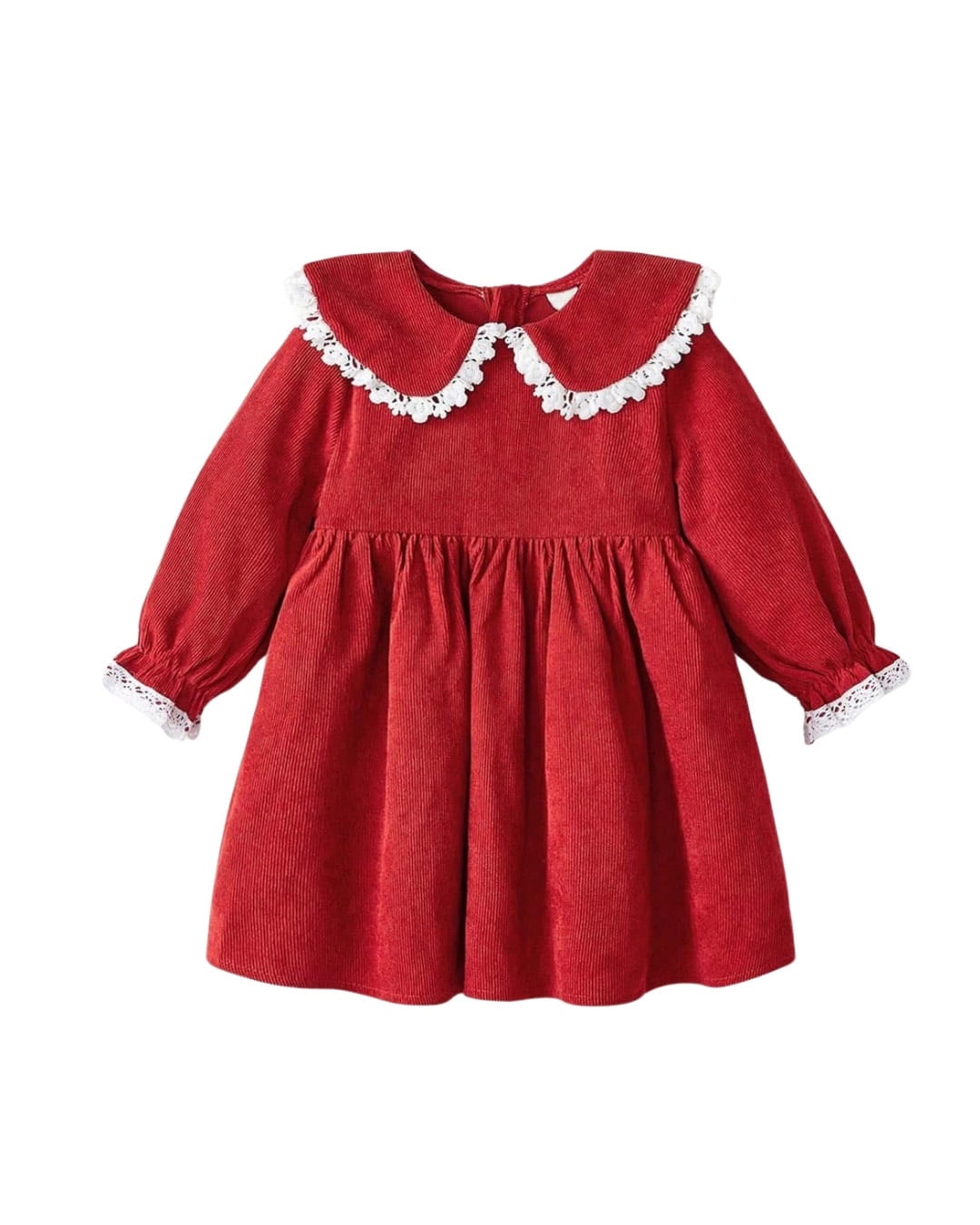 Bordowa sukienka świąteczna z kołnierzykiem.