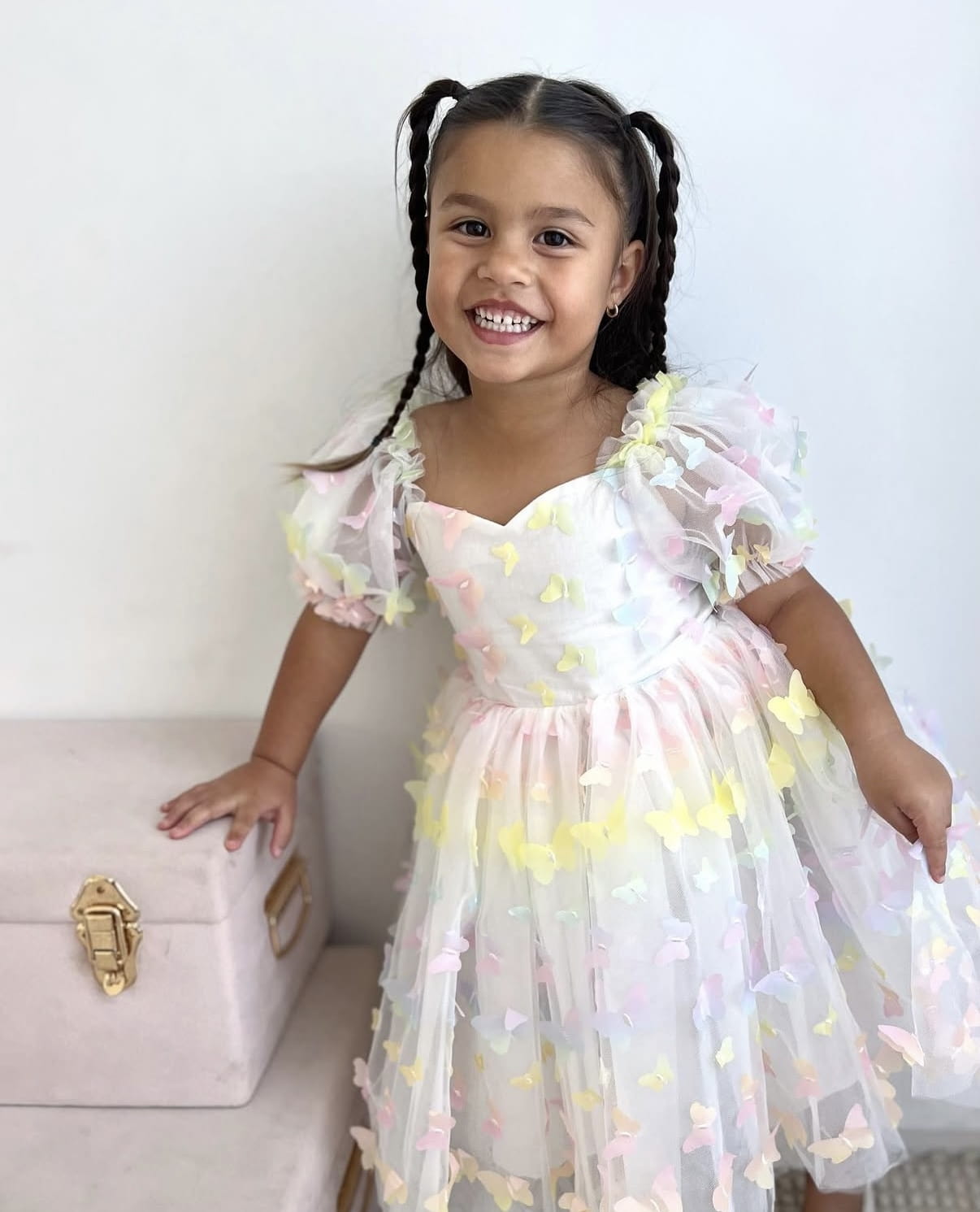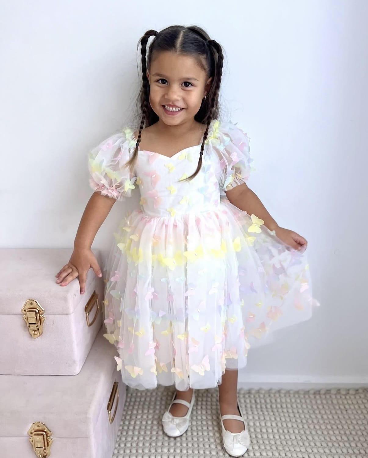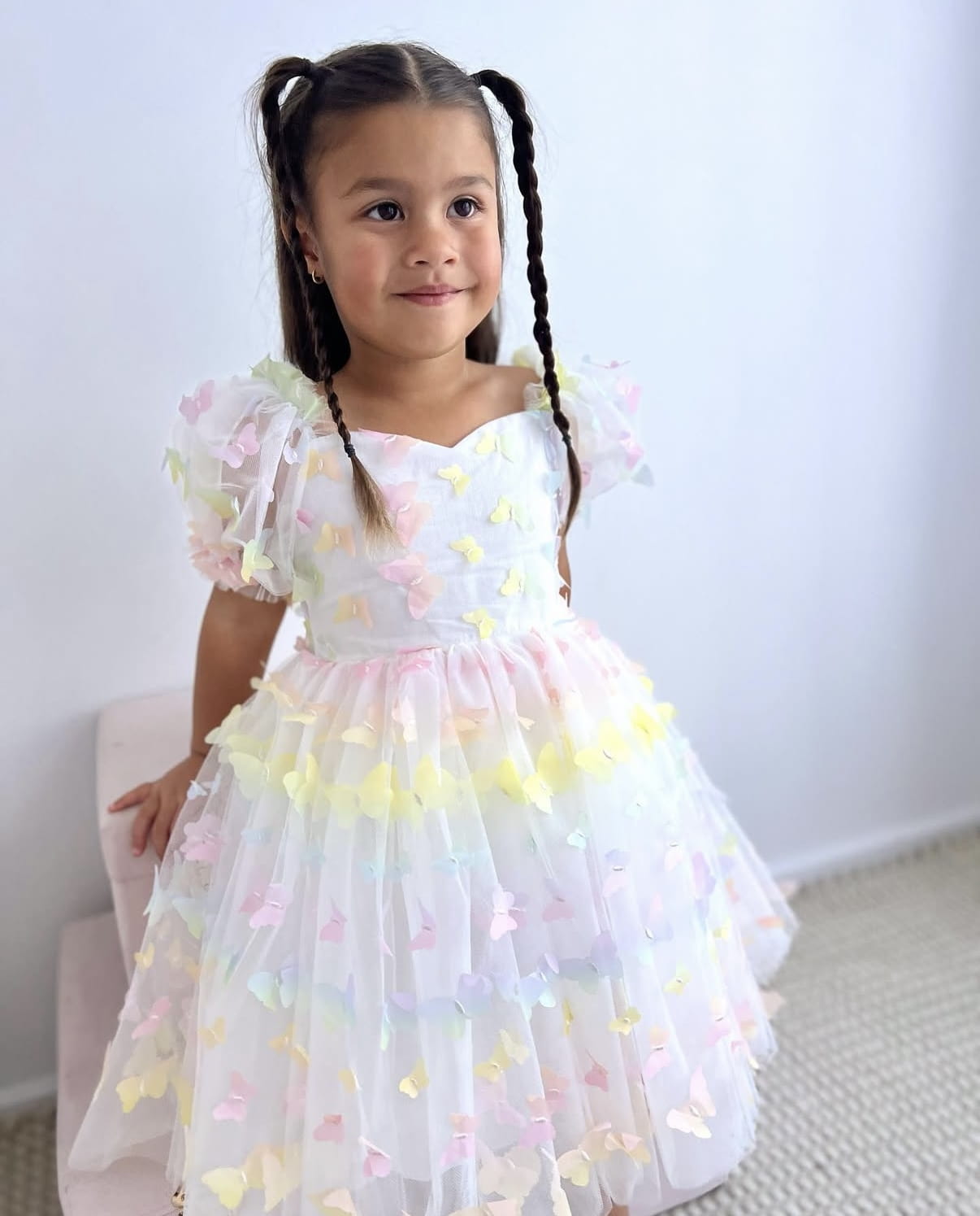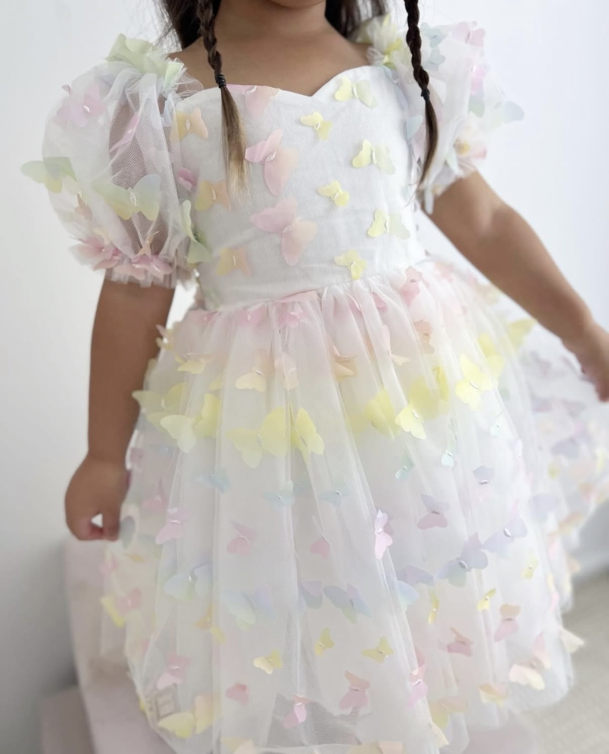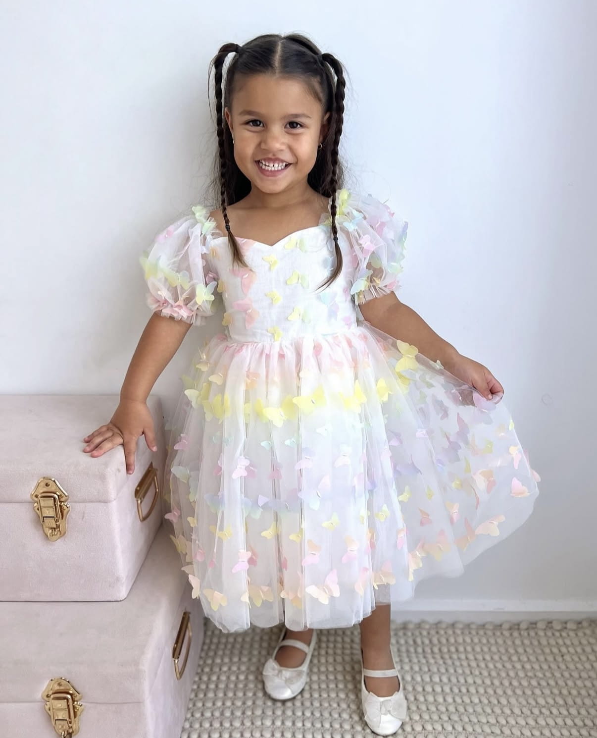 Najsłodsza sukienka ozdobiona trójwymiarowymi skrzydłami motyla. Idealna na sesje zdjęciowe oraz różne uroczystości (np. urodziny, chrzest, wesele).