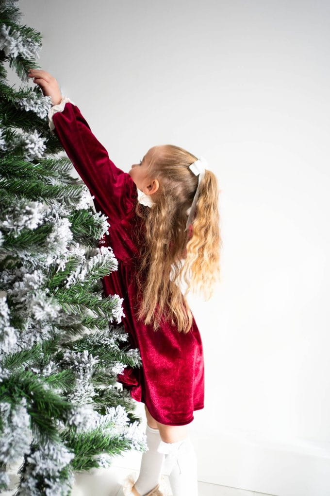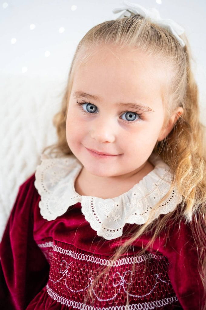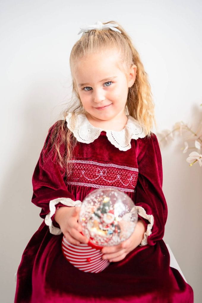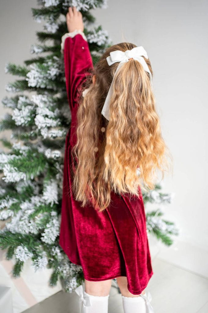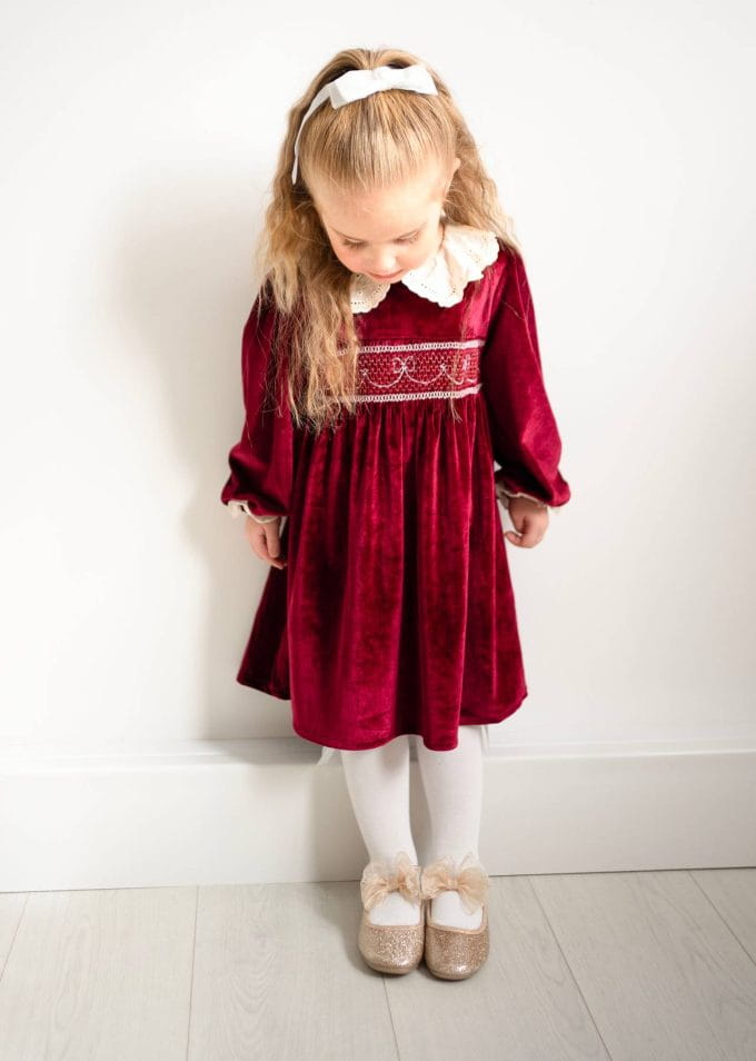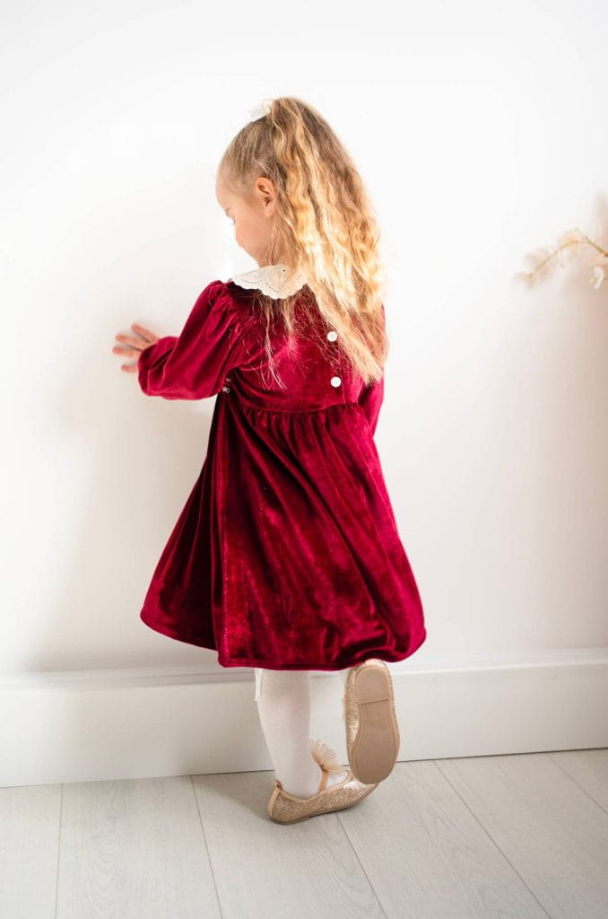 Świąteczna sukienka dla dziewczynki velvet w kolorze bordo.