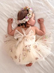 Rampers z przepięknej tiulowej tkaniny haftowanej kwiatami, najmodniejszy wzór w tym sezonie.
