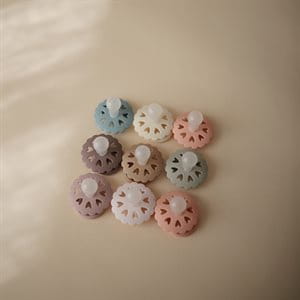 Smoczek FRIGG Fairytale jest inspirowany twórczością duńskiego autora H.C. Andersena. Najbardziej znany jest ze swoich fantastycznych baśni, ale jego twórczy umysł objawiał się nie tylko w słowach; widać to również poprzez jego magiczne wycinanki z papieru. FRIGG Fairytale z pofalowanymi krawędziami i serduszkami otaczającymi tarczkę, przedstawia jedną z papierowych wycinanek autorstwa H.C. Andersena. 8 małych serduszek wspiera uniwersalność jego twórczości i symbolizuje miłość - uniwersalny język świata. To właśnie było inspiracją, która była postawą do stworzenia smoczków FRIGG Fairytale: bo miłość to język który rozumie każdy z nas.