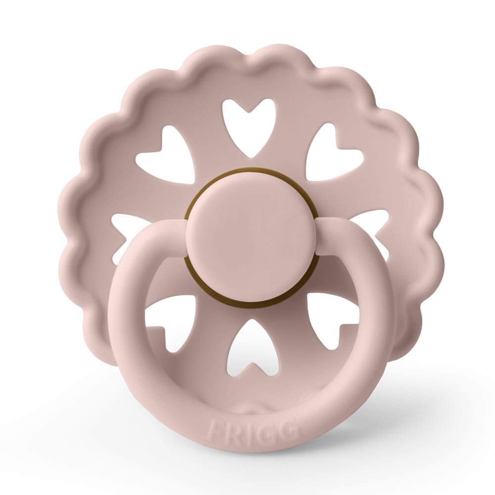 Smoczek FRIGG Fairytale jest inspirowany twórczością duńskiego autora H.C. Andersena. Najbardziej znany jest ze swoich fantastycznych baśni, ale jego twórczy umysł objawiał się nie tylko w słowach; widać to również poprzez jego magiczne wycinanki z papieru. FRIGG Fairytale z pofalowanymi krawędziami i serduszkami otaczającymi tarczkę, przedstawia jedną z papierowych wycinanek autorstwa H.C. Andersena. 8 małych serduszek wspiera uniwersalność jego twórczości i symbolizuje miłość - uniwersalny język świata. To właśnie było inspiracją, która była postawą do stworzenia smoczków FRIGG Fairytale: bo miłość to język który rozumie każdy z nas.