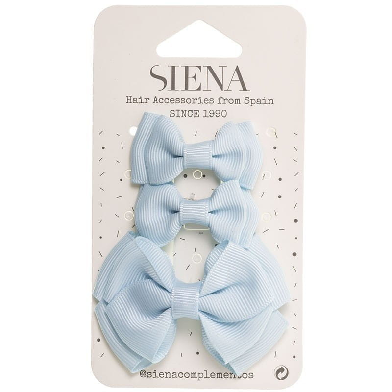 Zestaw trzech spinek do włosów - kokardka o wymiarach 7 x 4,5 cm i dwie mniejsze kokardki o wymiarach 4 x 2cm.